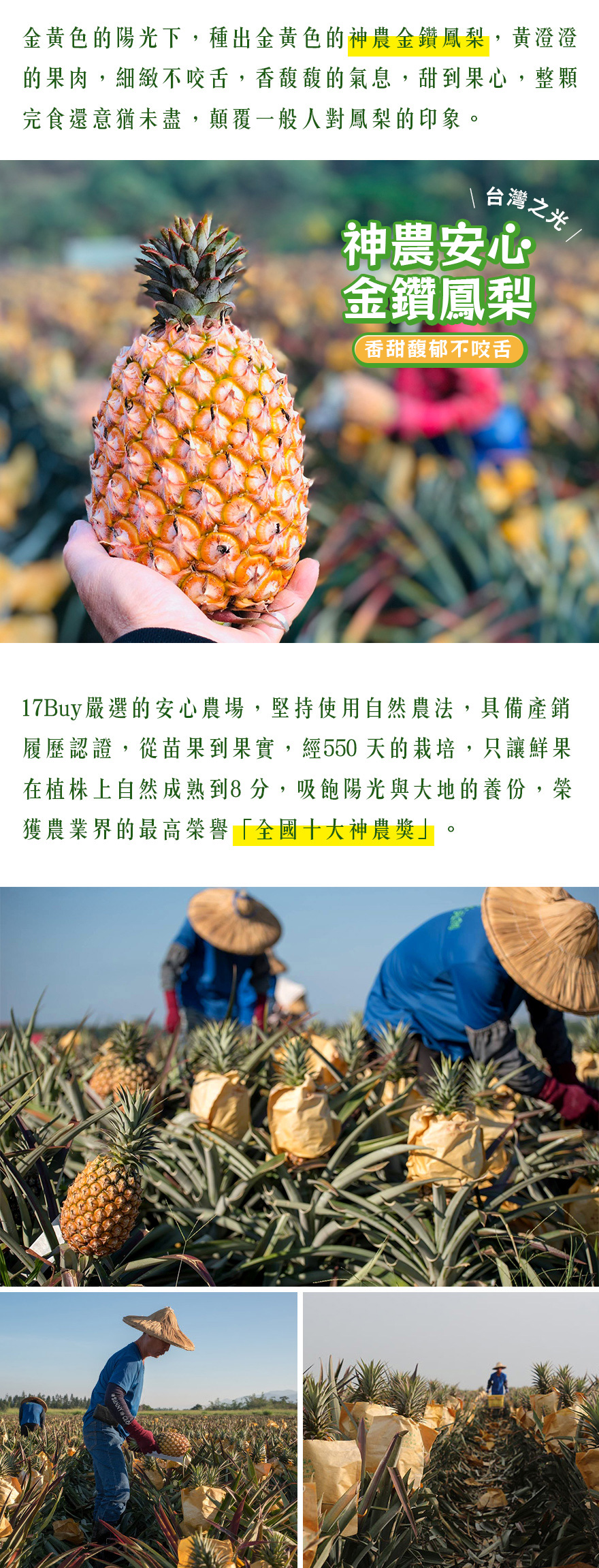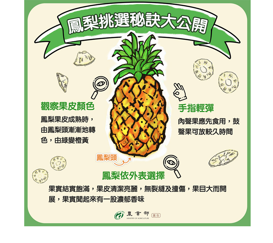 鳳梨以常溫配送,具後熟性,建議放置於陰涼通風處二~五天,視個別情況而定,等外表顏色逐漸轉黃,即可依喜歡的熟成度選擇食用,或放置冰箱儘速保存,但仍建議趁新鮮儘快享用,或可冷凍保存,夏天時直接吃或製作飲品都非常清涼暢快,也是健康的消暑選擇。