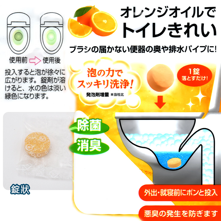 日本製造品質安心,馬桶內洗淨、消臭,一次完成。使用方法::取出1錠丟入馬桶內,放置2小時以上再按沖水鈕沖掉。