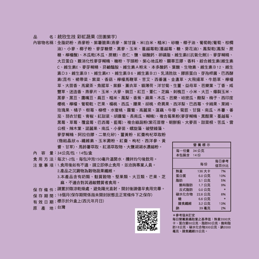 [Uni-TongXin] Rainbow Veggie Shake – Purple Taro Flavor (14 Sachets/Box) ×2 Box