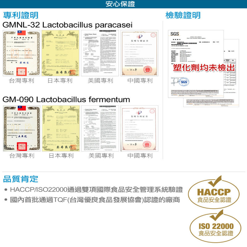 ✔五菌合一,含有美、日、中、台多國專利認證的菌株。