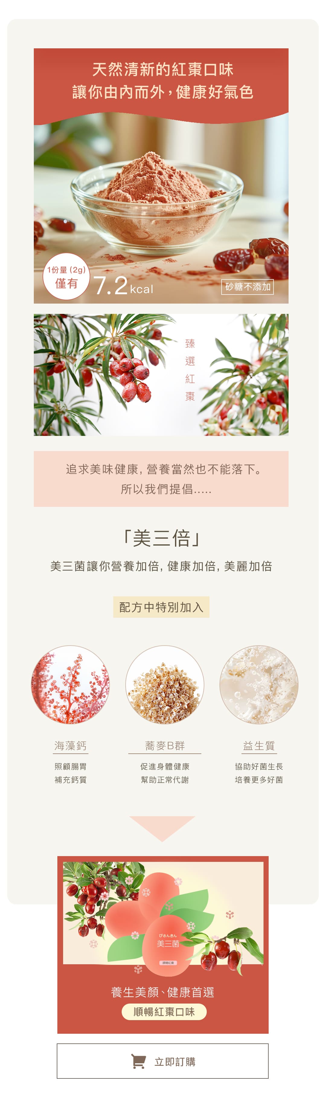 採用益生質、蕎麥B群及海藻鈣,組成+3完美組合