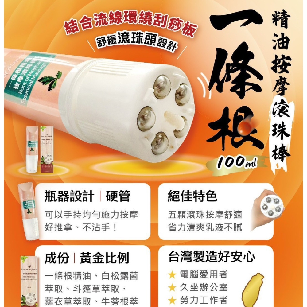 1. 一條根精油按摩滾珠棒