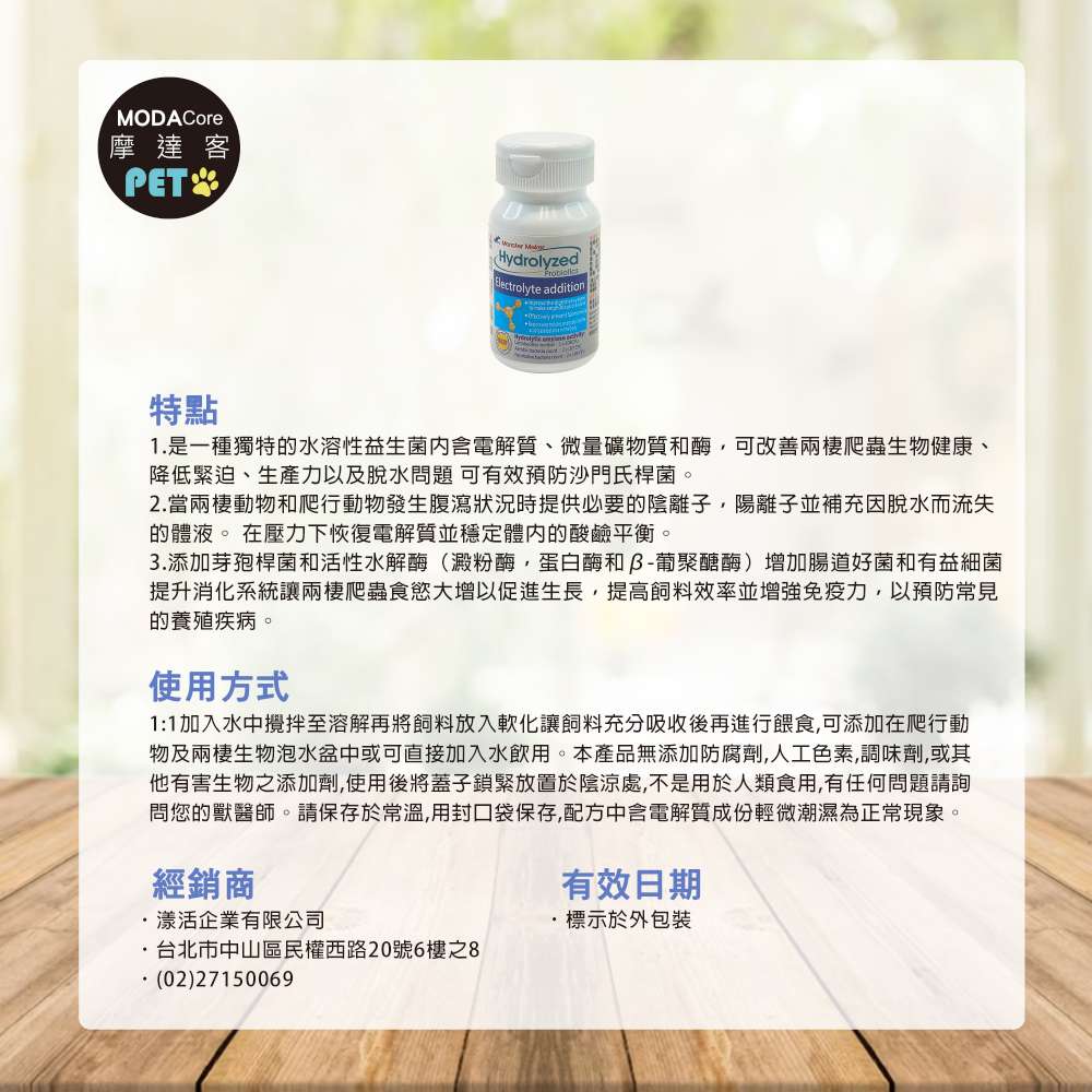 獨特的水溶性益生菌,含豐富電解質可改善兩棲爬蟲生物健康