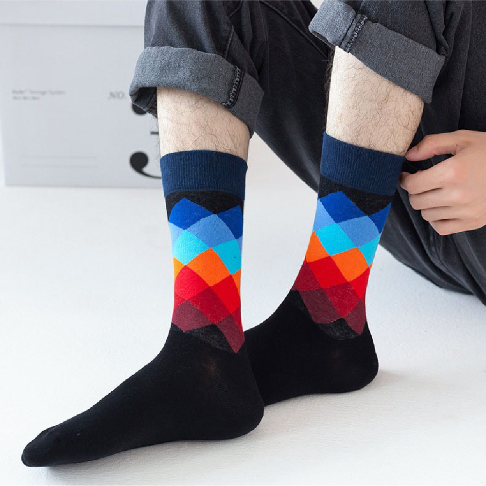 ‧INS風格設計,潮流百搭‧高彈性中筒版型‧舒適親膚面料‧五款圖案隨機組合
