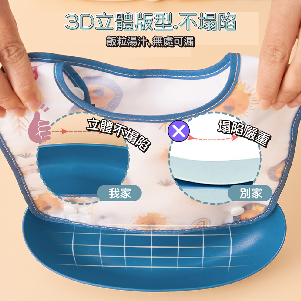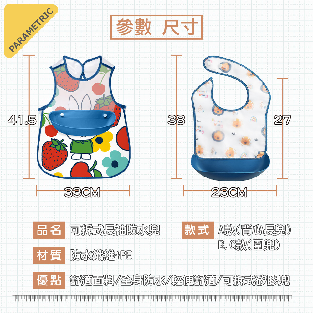 ・防水材質,輕鬆擦拭不滲漏・可拆式接食兜,方便清洗收納・柔軟舒適,不勒脖子
