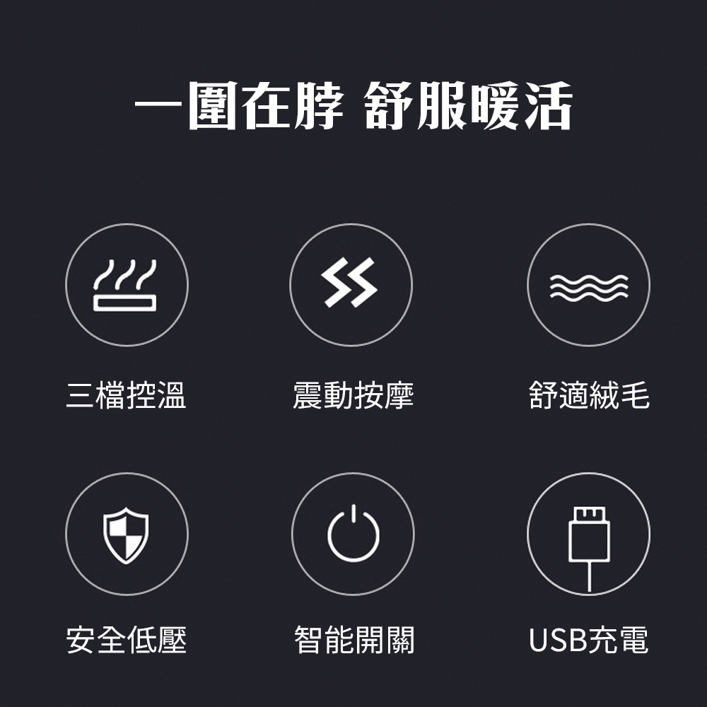Neck Warmth & Relaxation 【Heated Massage Scarf】Continuous heating with three temperature settings and four massage modes.