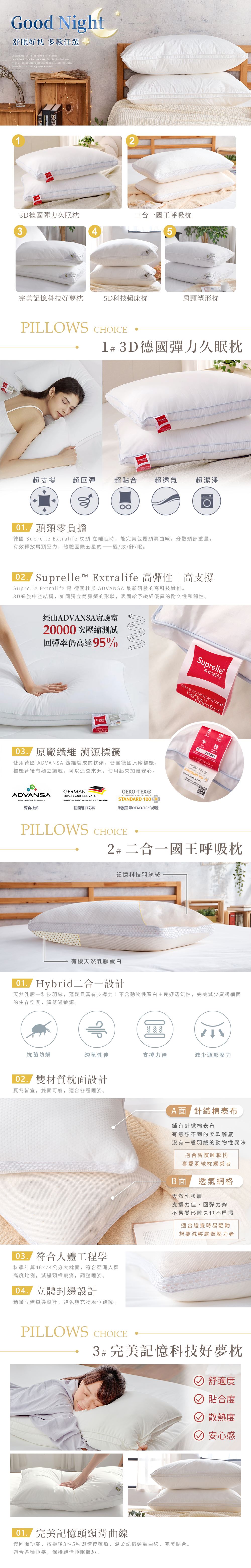 ■多款枕頭任選,輕鬆選擇安心入睡