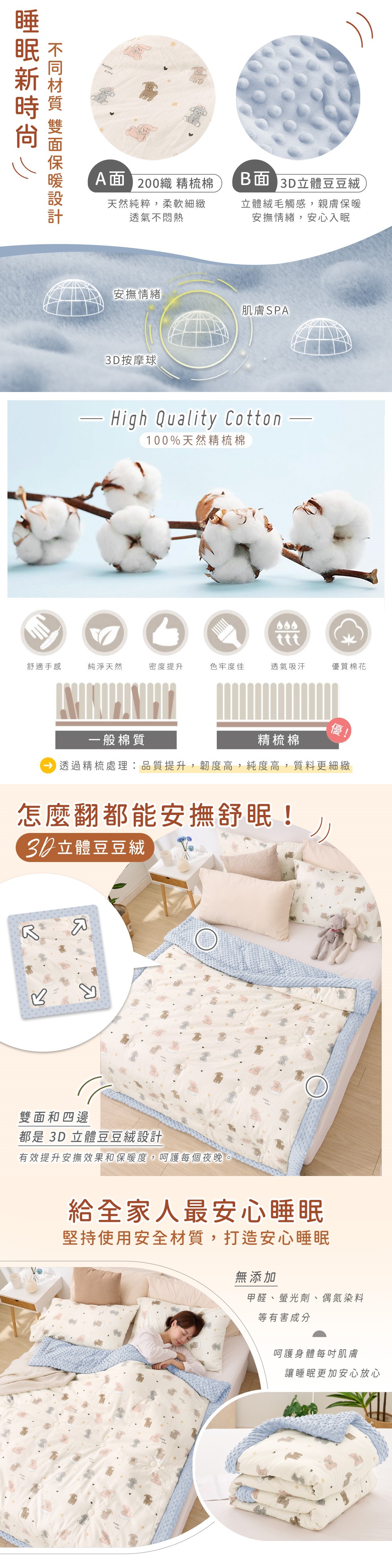 ▪表布B面:100%聚酯纖維(3D立體豆豆絨)