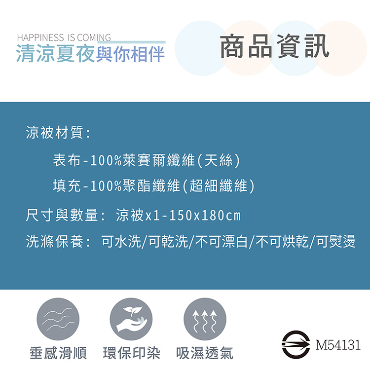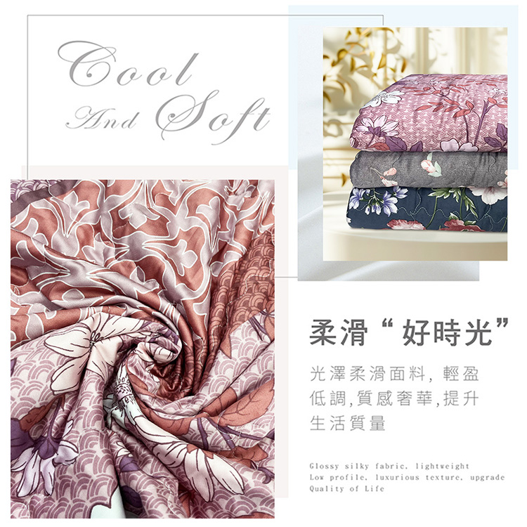 ★特色:★光滑柔軟如絲的觸感★可當冷氣被或四季被使用★極佳的吸濕透氣,觸感涼爽★快速排除濕氣,乾爽不黏膩★夏日必備涼爽商品★一被多用,方便攜帶