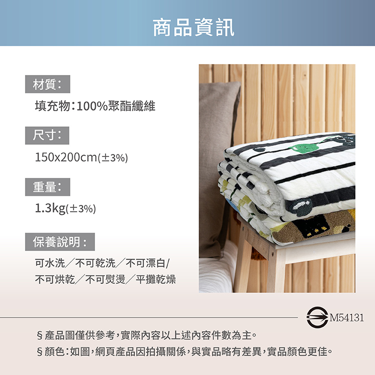 ★材質:100%聚酯纖維★產地:中國★內容件數與尺寸:數量:牛奶絨羊羔絨毯x1件尺寸:150x200cm±3%★網頁圖片因拍攝關係,與實品略有差異,實際顏色以出貨為主★產品圖僅供參考,實際內容以上述內容件數為主。★可水洗╱不可乾洗╱不可漂白╱不可烘乾╱不可熨燙/平攤乾燥★ ※建議使用洗衣袋清洗※不可使用柔軟精※建議新品請先過水後再使用尤佳