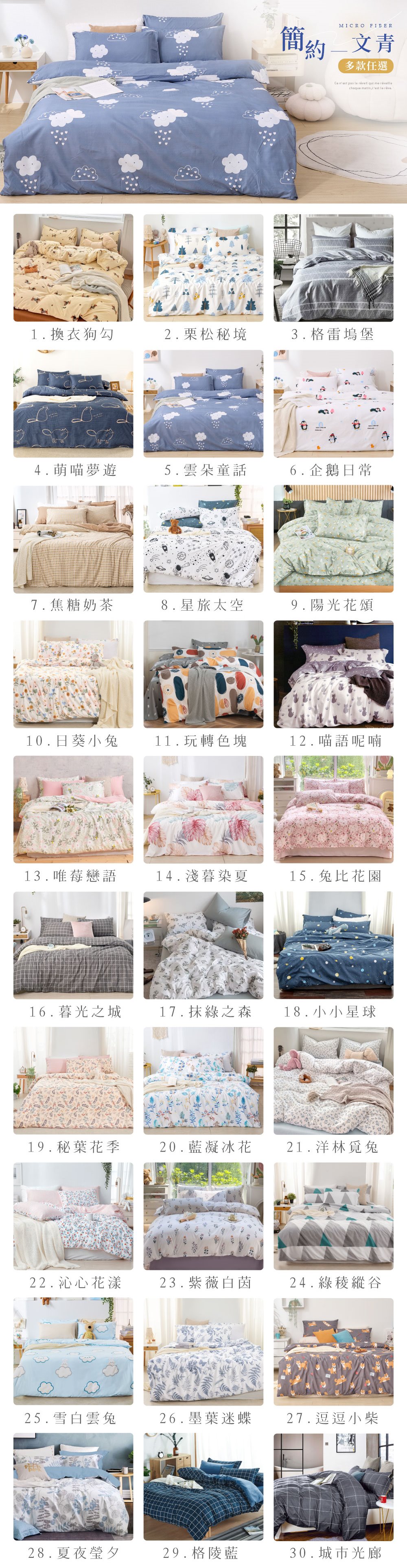 ⭐尺寸說明⭐🎀單人床包二件組1. 單人薄床包(105*186cm)x12. 信封式枕套(45*75cm±5%)x1 ----------------🎀單人床包被套三件組1. 單人薄床包(105*186cm)x12. 單人薄被套 (135*195 cm) x13. 信封式枕套(45*75cm±5%)x1 ----------------🎀單人床包二件組+雙人薄被套1. 單人薄床包(105*186cm)x1 2. 雙人薄被套(180×210公分) x13. 信封式枕套(45*75cm±5%)x1----------------🎀單人床包二件組+雙人鋪棉兩用被套1. 單人薄床包(105*186cm)x1 2. 雙人鋪棉兩用被套(180*210cm)x13. 信封式枕套(45*75cm±5%)x1----------------🎀雙人床包三件組1. 雙人薄床包(150*186cm)x12. 信封式枕套(45*75cm±5%)x2----------------🎀雙人床包被套四件組 1. 雙人薄床包(150*186cm)x12. 雙人薄被套(180*210cm)x13. 信封式枕套(45*75cm±5%)X2----------------🎀雙人四件式舖棉兩用被床包組 1. 雙人薄床包(150×186公分) x1 2. 舖棉兩用被套(180×210公分) x1 3. 信封式枕套(45*75cm±5%) x2----------------🎀雙人加大床包三件組1. 雙人加大薄床包(180*186cm)x12. 信封式枕套(45*75cm±5%)x2----------------🎀雙人加大床包被套四件組1. 雙人加大薄床包(180*186cm)x12. 雙人薄被套(180*210cm)x13. 信封式枕套(45*75cm±5%)x2----------------🎀雙人加大四件式鋪棉兩用被床包組 1. 雙人加大薄床包(180*186cm) x12. 舖棉兩用被套(180×210公分) x1 3. 信封式枕套(45*75cm±5%) x2----------------商品說明:▪ 材質: 100%超細纖維▪ 產地:台灣製▪ 床包:採用全包覆式鬆緊帶,可防止床包滑動▪ 枕套:美式信封枕套▪ 被套:有四角綁繩▪ 床包包覆高度:28cm±5%----------------⚠️注意事項⚠️.因布料裁切位置的不同,部份花版可能會與商品圖略有出入,請以收到的實品為主。.個人衛生用品,如經拆封使用、下水洗滌或拆解以致缺乏完整性及失去再販售價值時,恕不接受退換貨。搜尋【duyan_bedding】可看到更多商品