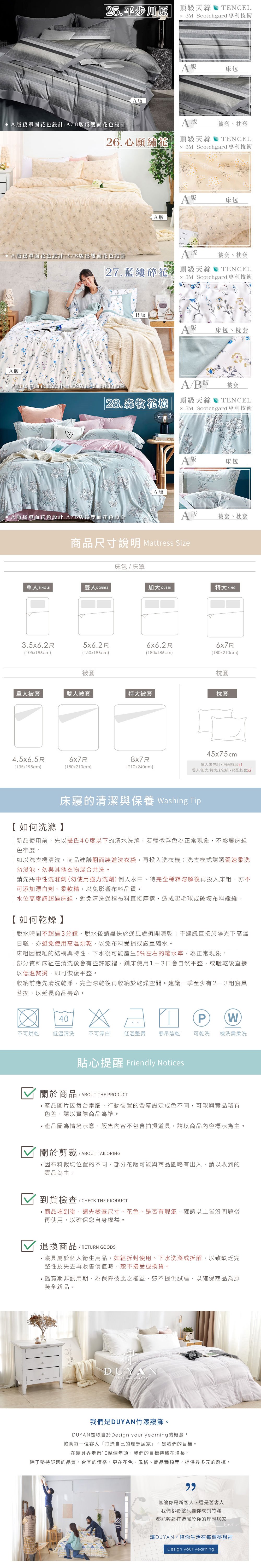 商品說明:▪材質: 50%萊賽爾纖維+50%聚酯纖維▪ 產地:台灣▪ 床包:採用全包覆式鬆緊帶,可防止床包滑動▪ 枕套:美式信封枕套