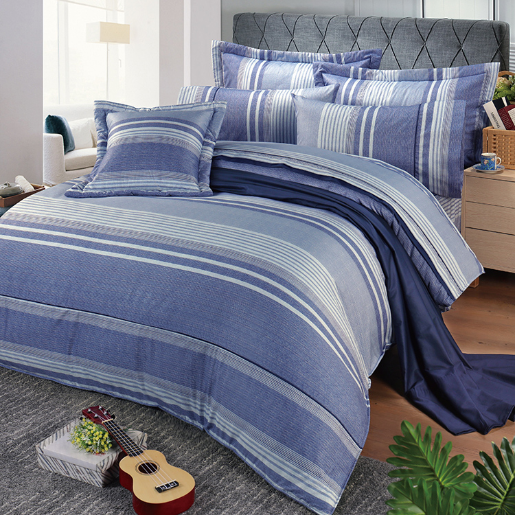 FITNESS 精梳棉雙人加大七件式床罩組-安德里-藍