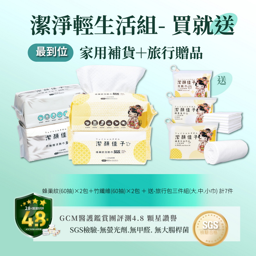 贈: 蜂巢紋洗臉巾隨行包(10入)x 1