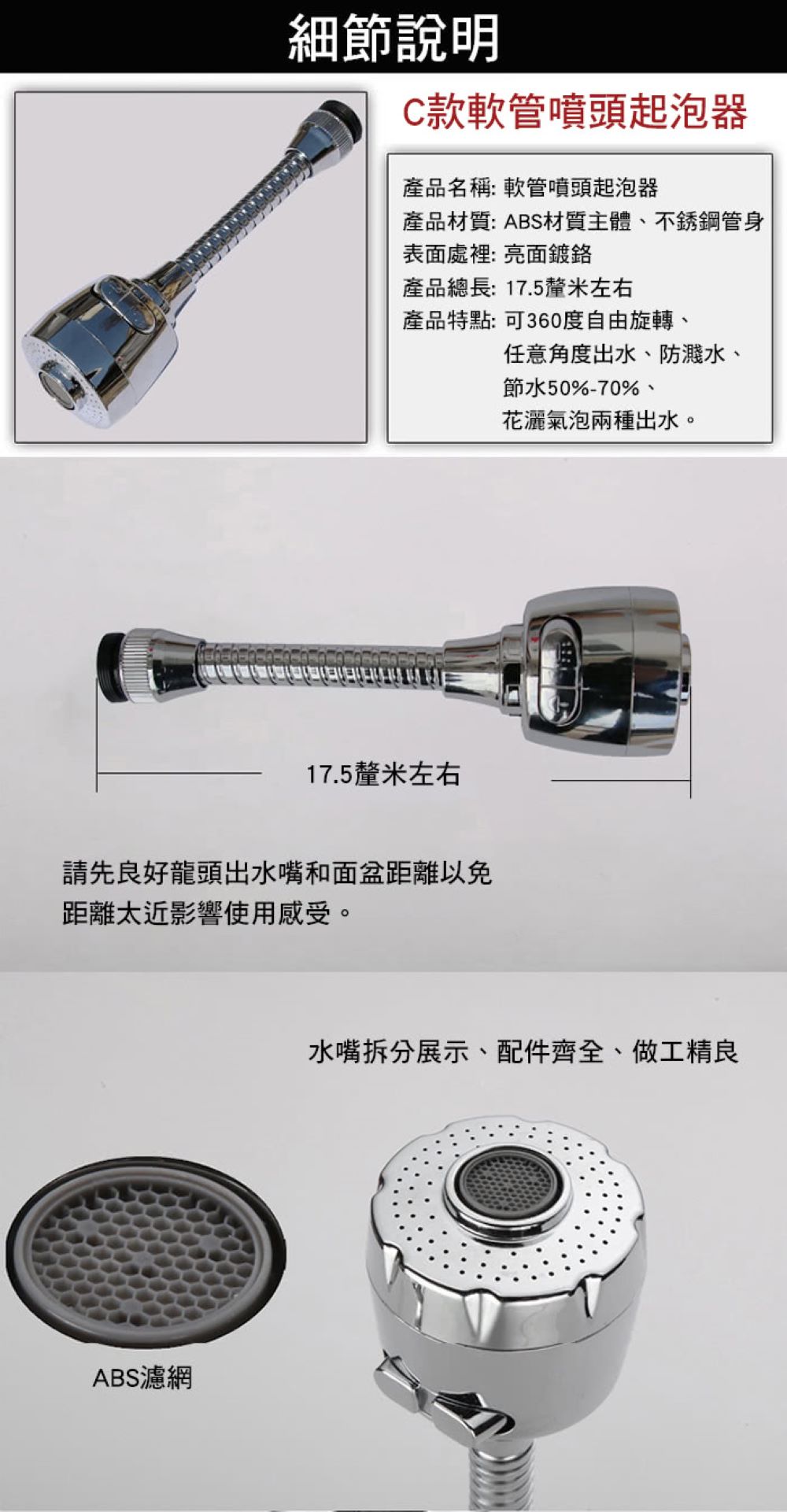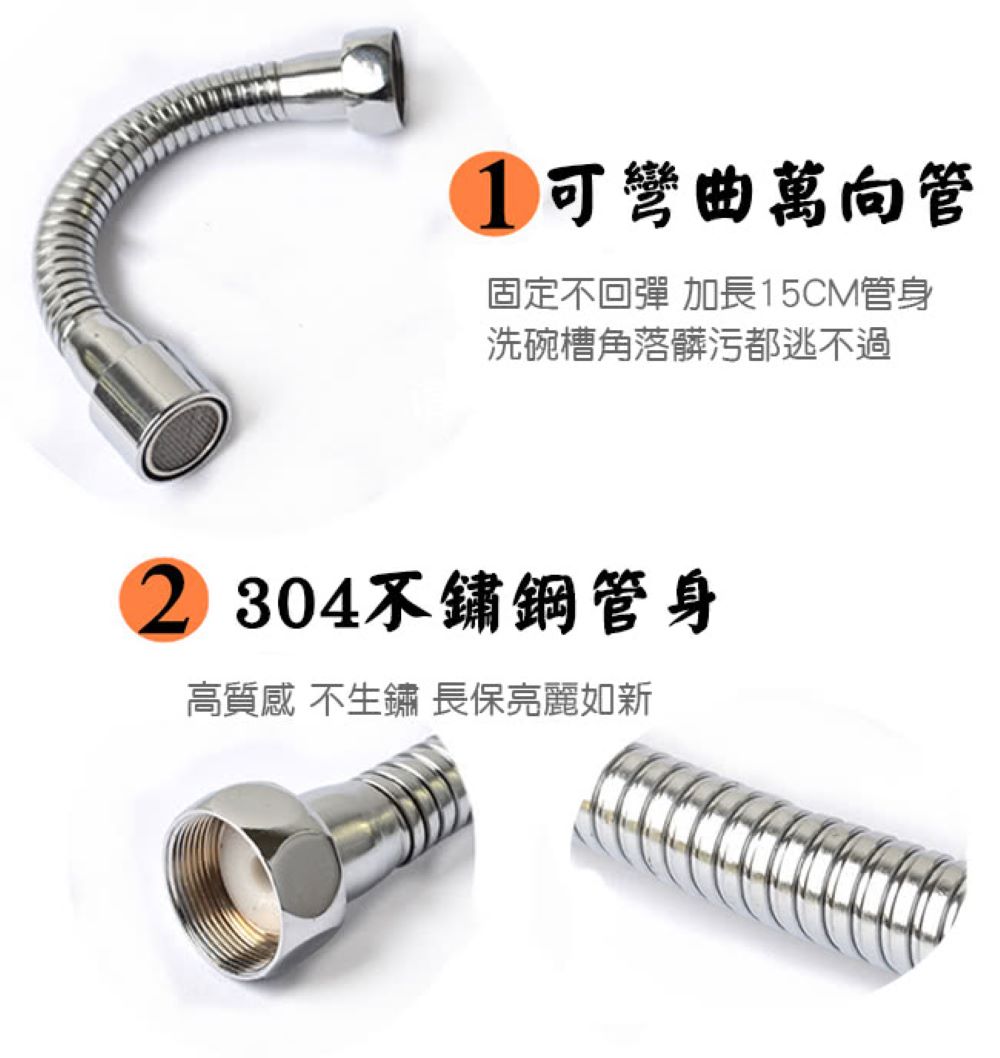 ■品名:兩段式360度省水加壓頭/不銹鋼蛇管組