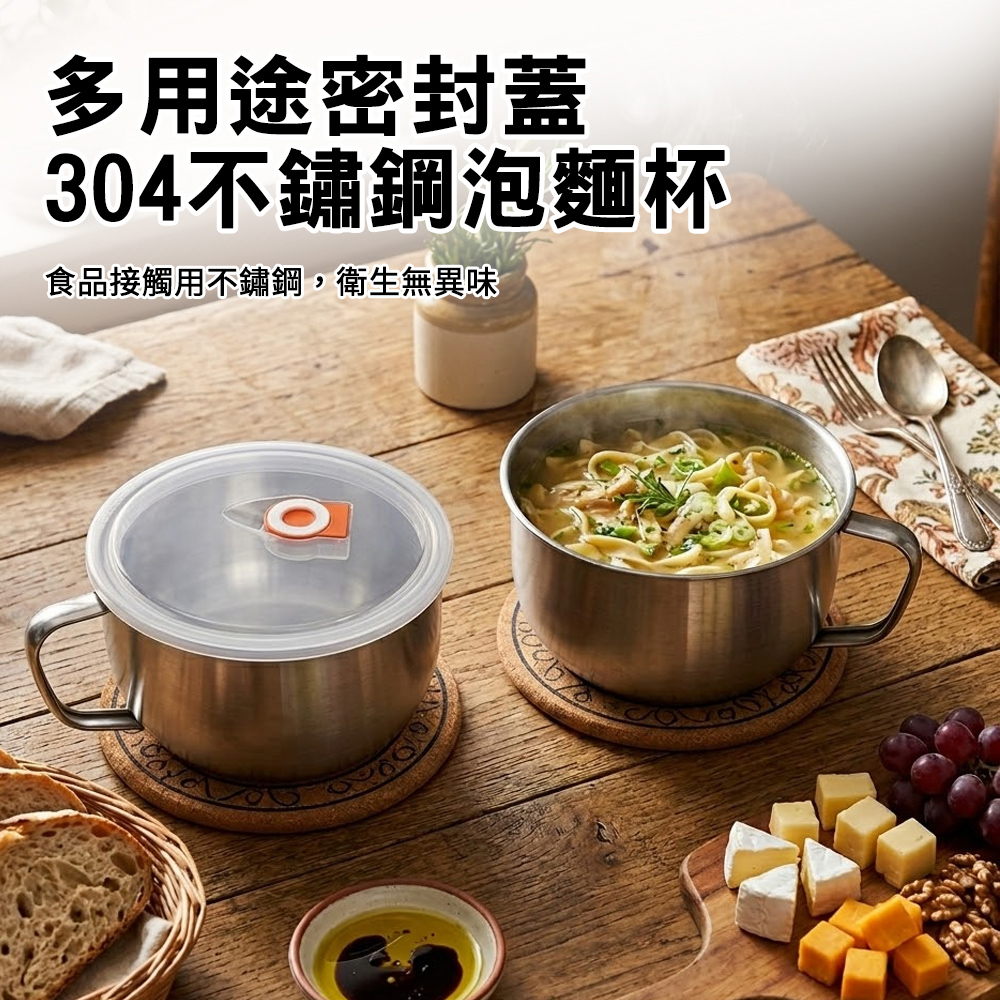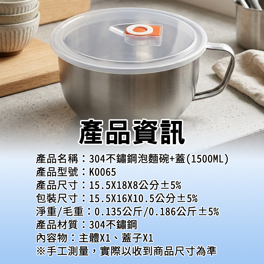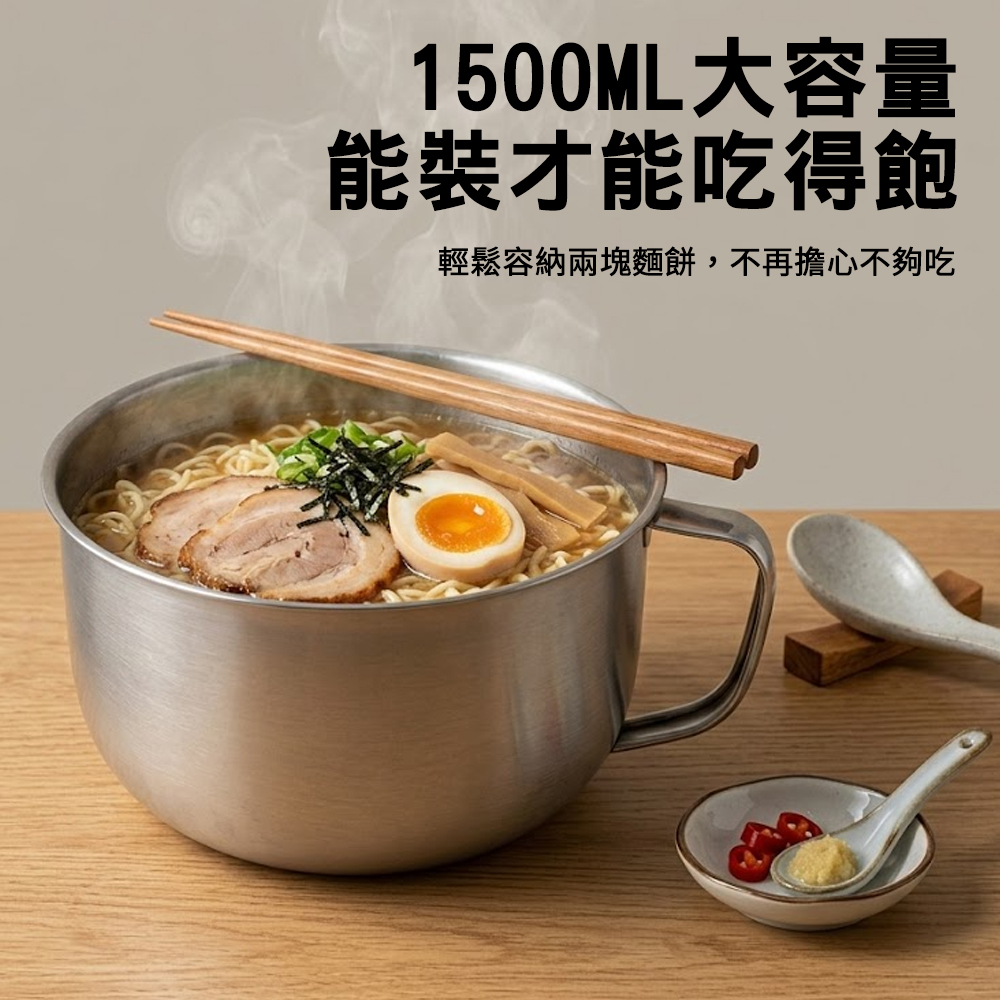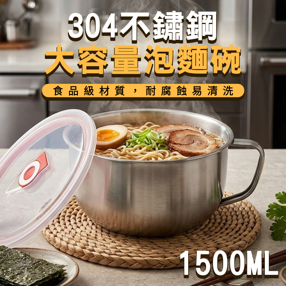 ◆光滑內壁好清洗,日常使用更省心產品名稱:【ENNE】304不鏽鋼泡麵碗+蓋(1500ml)