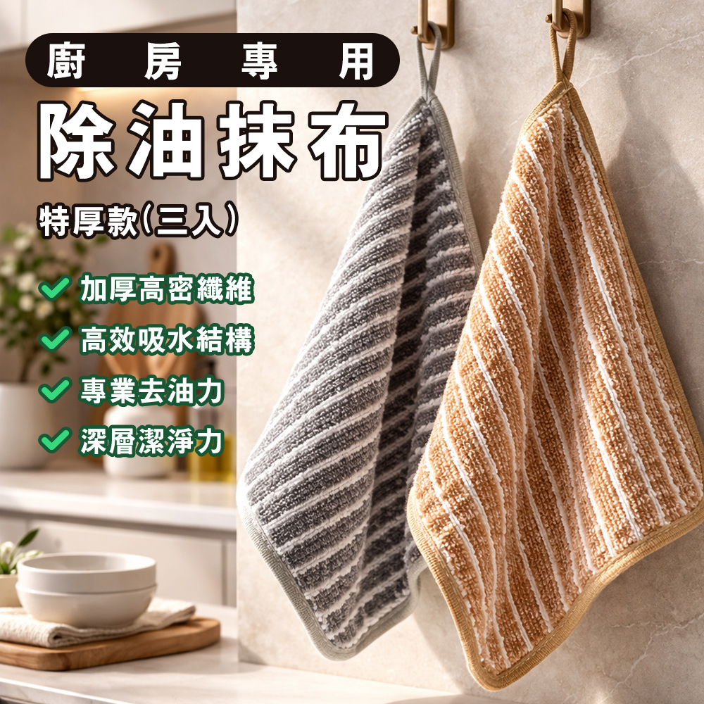 產品名稱:廚房專用除油抹布特厚款(3條入)