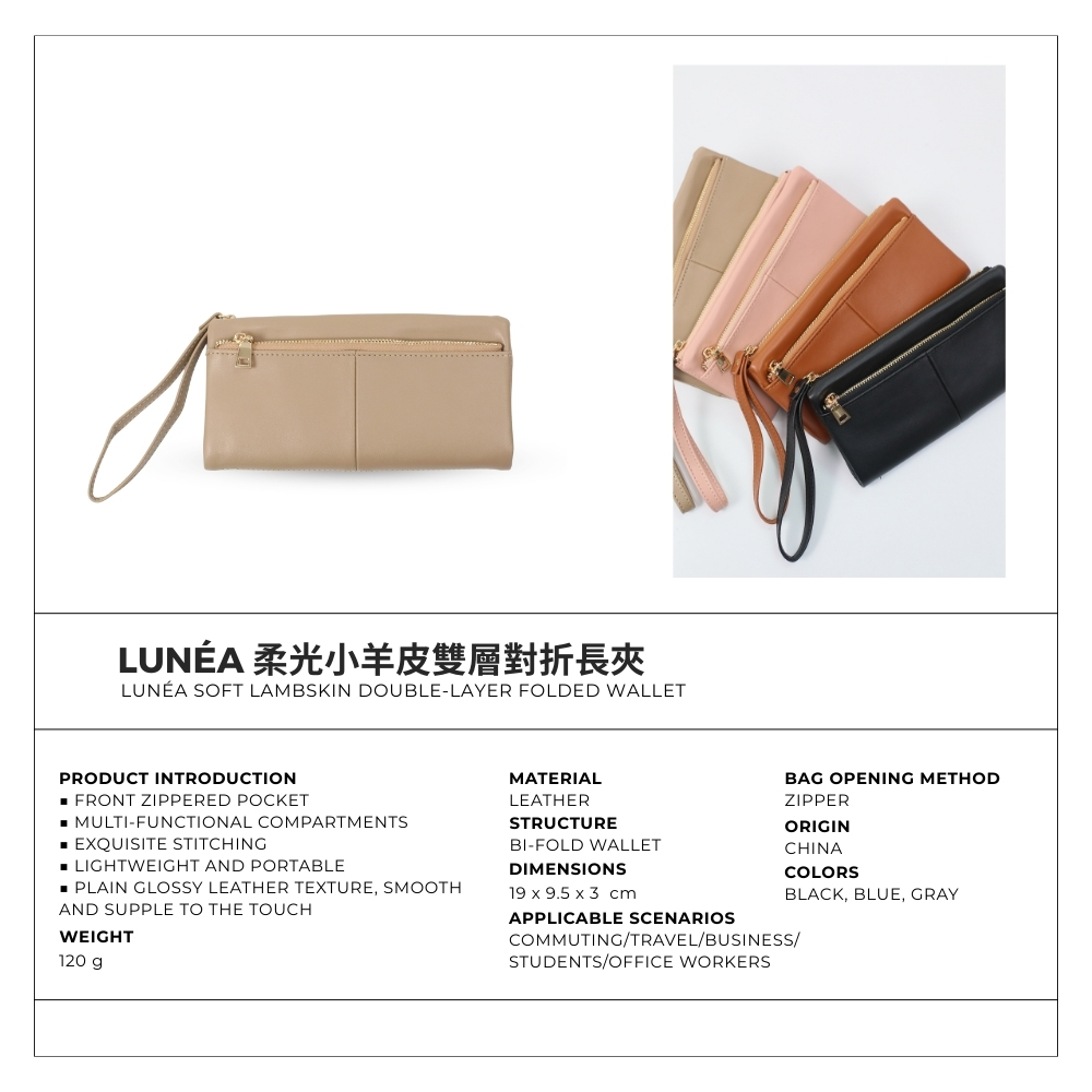 LUNÉA 柔光小羊皮雙層對折長夾 多卡位收納 人氣女用皮夾 女夾 錢包 氣質百搭長夾