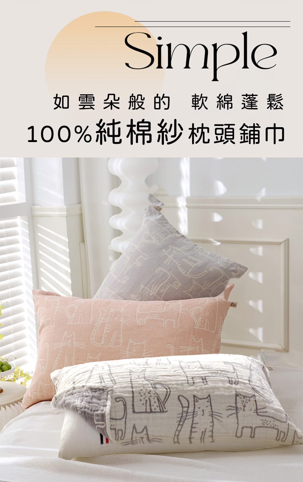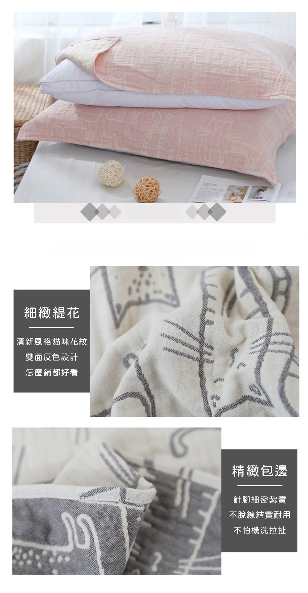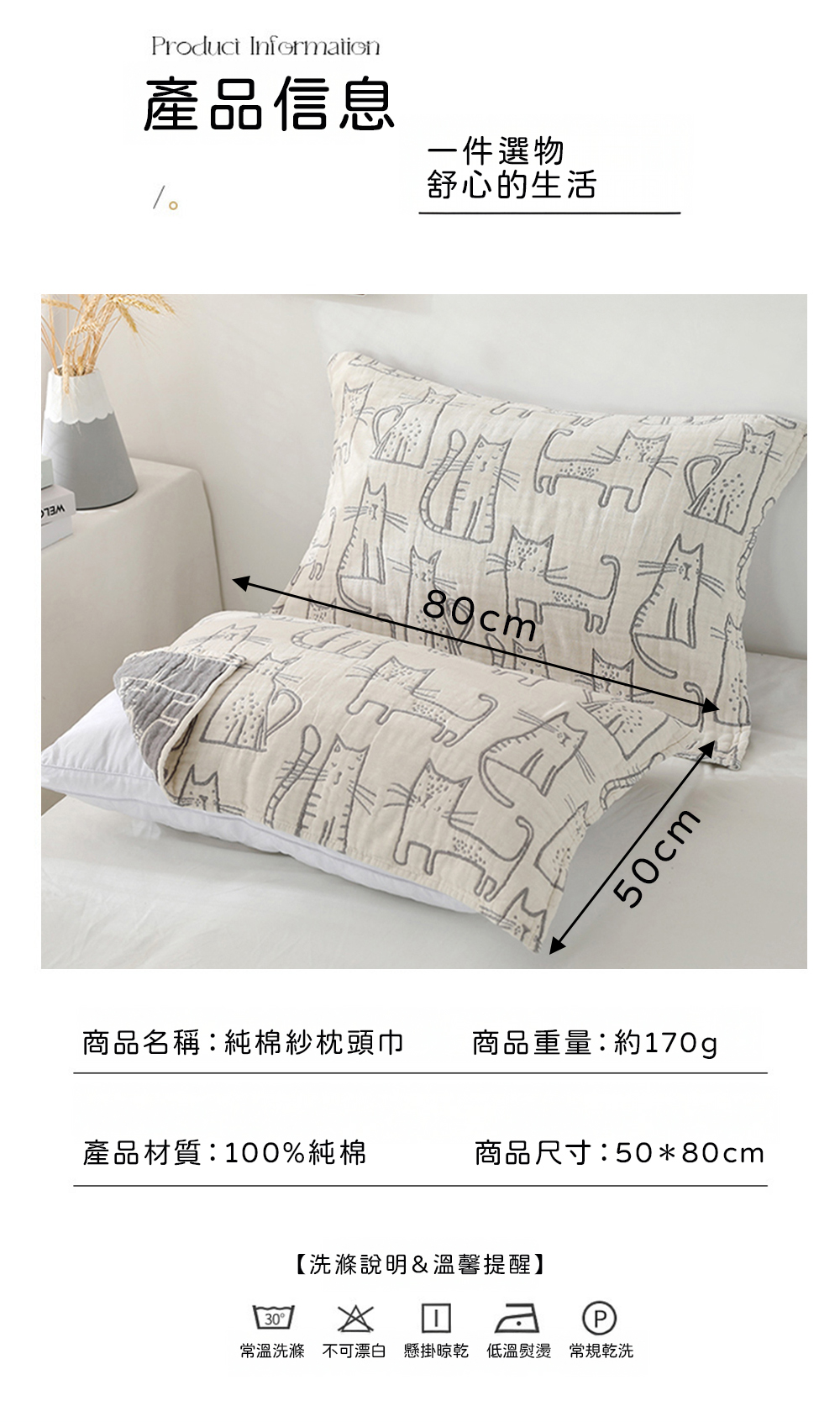 這款100%純棉紗枕頭鋪巾