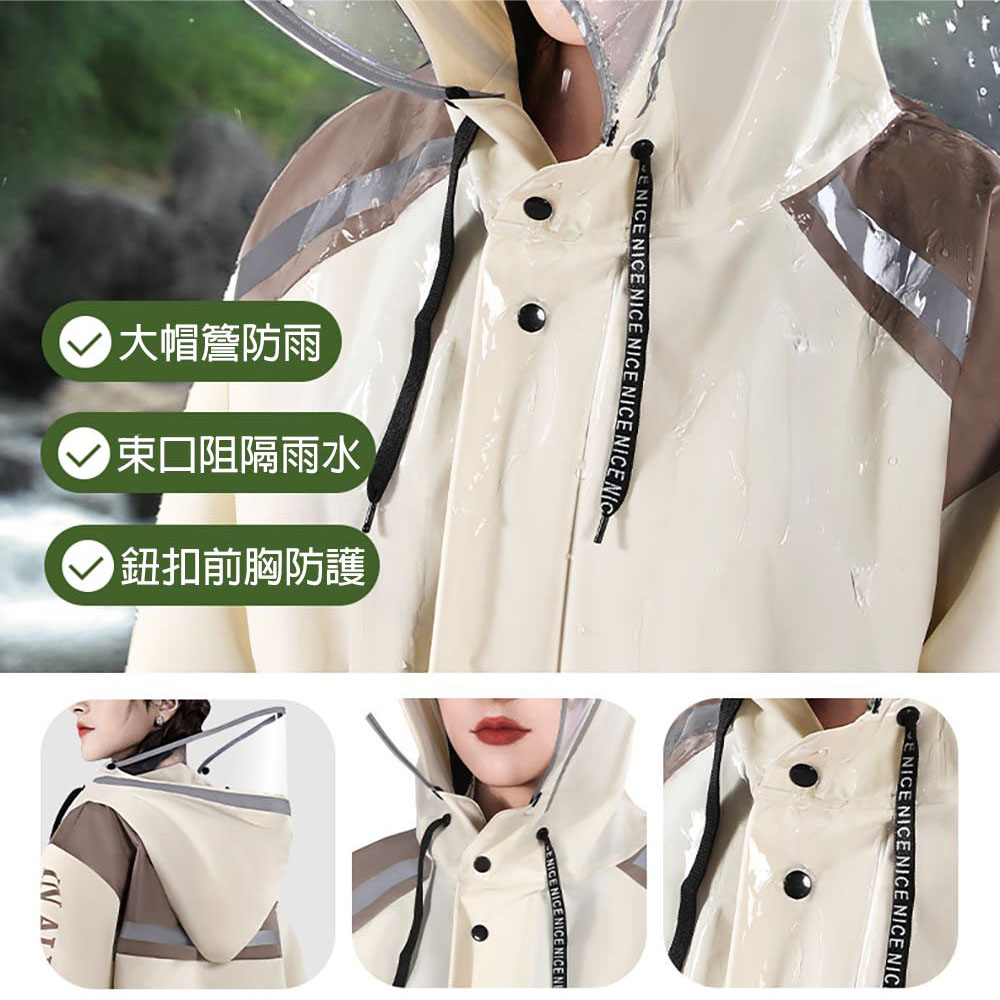 防水防風材質,有效抵禦大雨與強風連身長款設計,全身覆蓋不易滲水收腰剪裁版型,修身顯瘦不臃腫