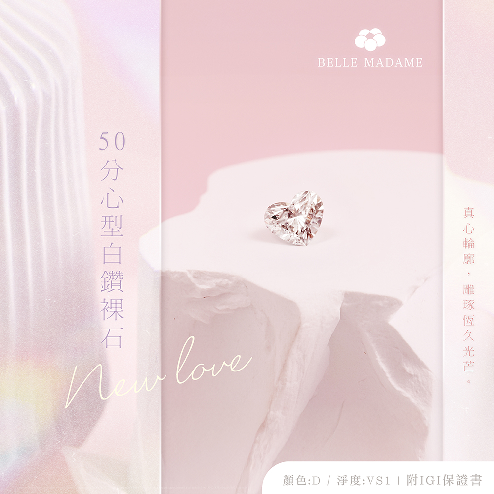 一顆50分心型裸鑽澄澈純淨,安靜卻動人在光影流轉中訴說著無聲卻深刻的心語將最真摯的愛,凝結成永恆的璀璨