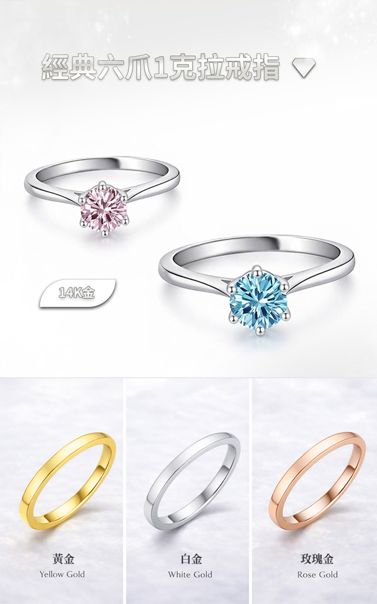 【CITY STAR】IGI Classic Six-Prong 1-Carat Diamond Ring (14K Gold) - Pink Diamond (D / VVS or higher / 3EX)