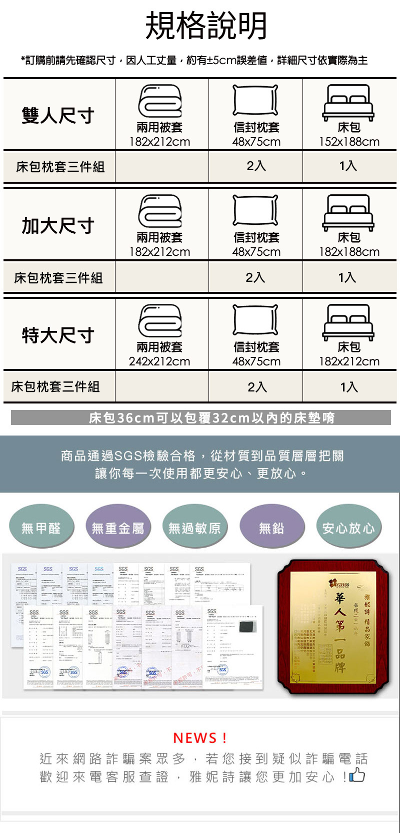 .商品皆有SGS國家認證,甲醛/八大重金屬 未檢測出