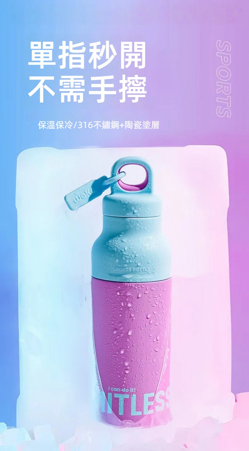 #A&R #316不鏽鋼 #陶瓷塗層 #雙色 #按開式 #運動水壺 #500 ML #保溫 #密封 #速開 #便攜 #環保杯 #跑步 #單車 #登山水壺