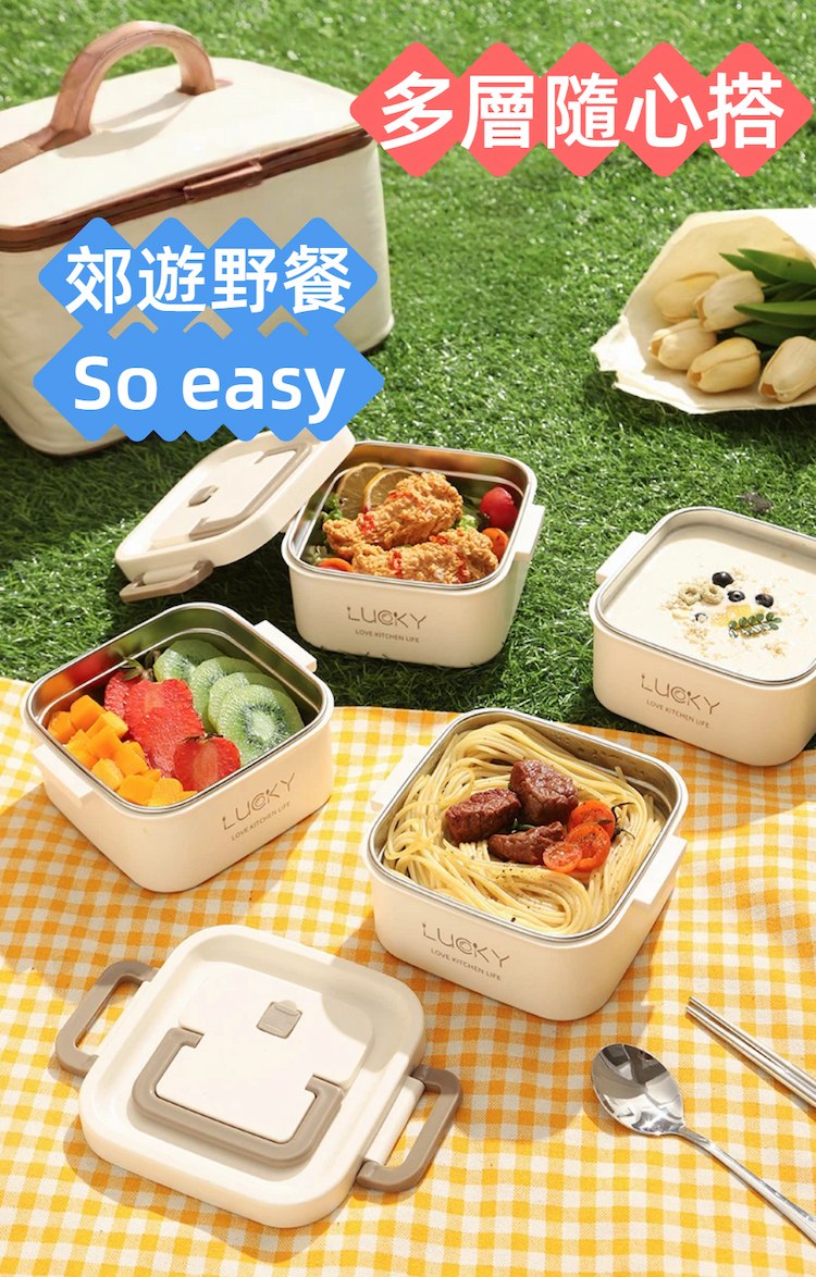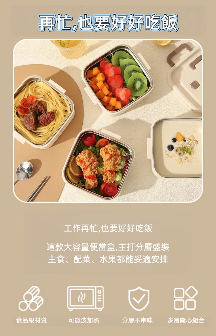 #A&R #四入組 #日式 #304不鏽鋼 #便當盒 #保溫袋 #餐具組 #微波四方款 #2800ML #保溫 #密封 #防漏 #大容量 #環保