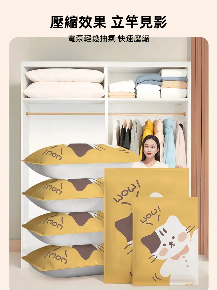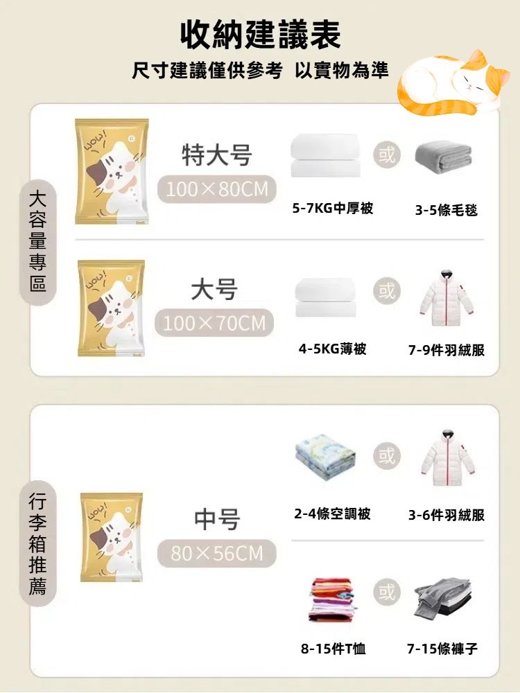#A&R #六入組 #喵趣 #真空 #加厚 #壓縮袋 #100x80cm #100x70cm #80x56cm #衣物 #羽絨外套 #收納袋 #旅行收納