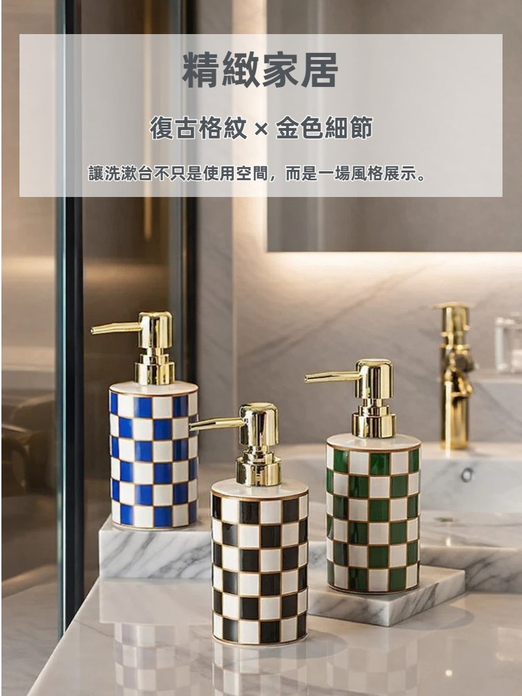 #A&R #復古 #棋盤格 #陶瓷 #洗護 #按壓瓶 #300ML #輕奢風 #洗手乳 #洗髮精 #沐浴乳 #飯店分裝瓶