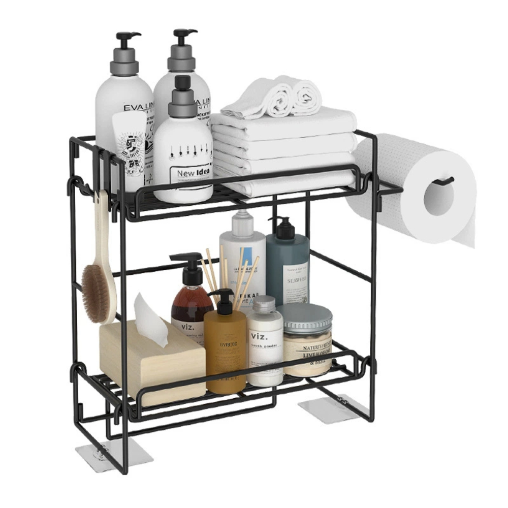 【A&R】雙層浴室雙用收納置物架 黑色
