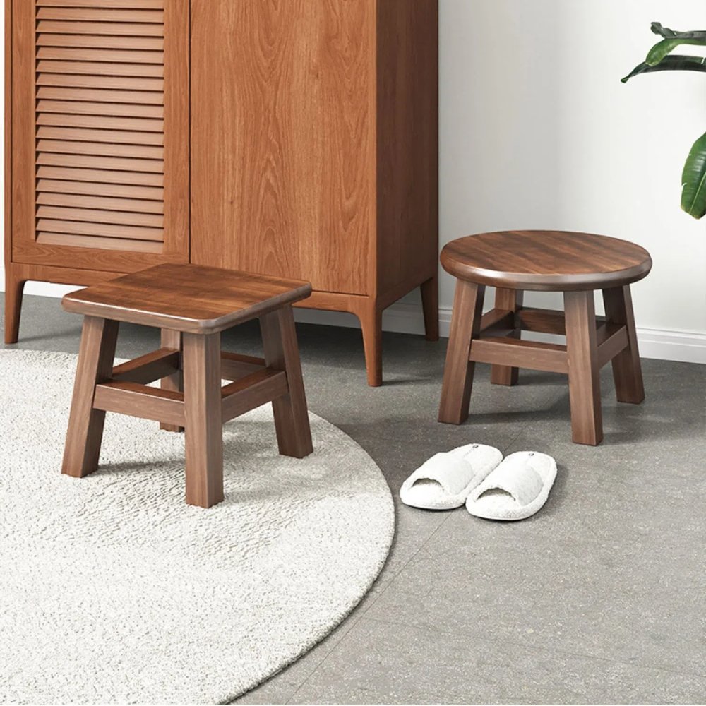 【A&R】歐風現代簡約實木矮板凳 原木方形款