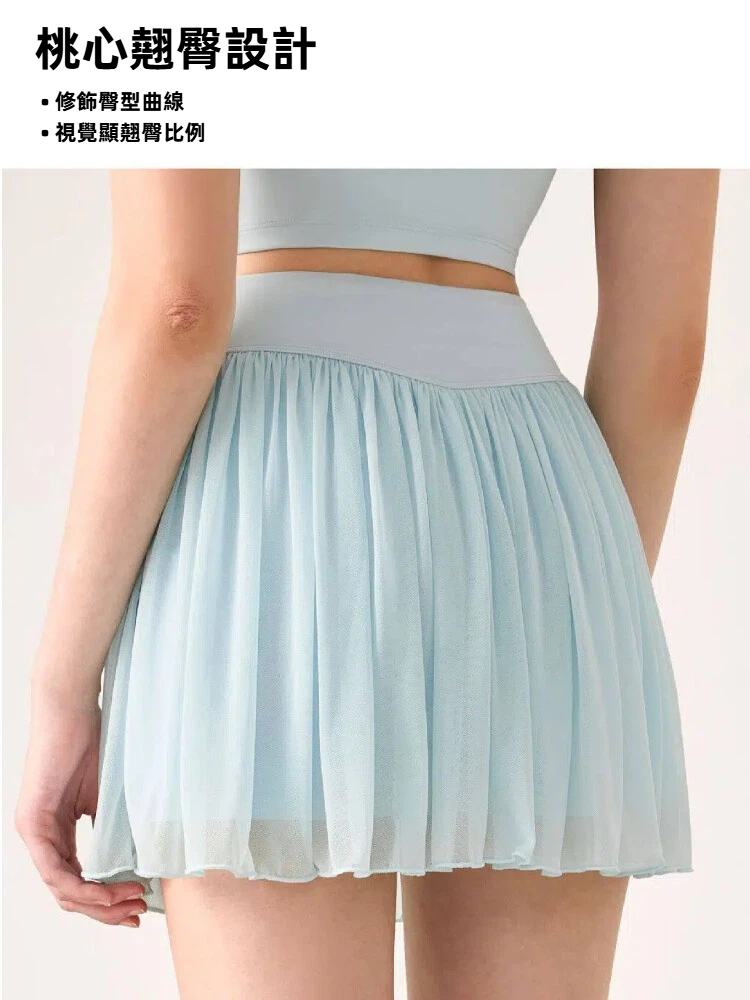 #A&R #韓系 #網紗 #高腰 #顯瘦 #百褶 #A字 #運動 #褲裙 #防走光 #安全褲 #騎車 #健身 #網球 #瑜珈 #羽球 #高爾夫
