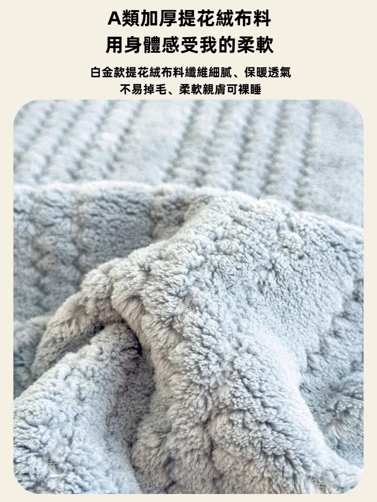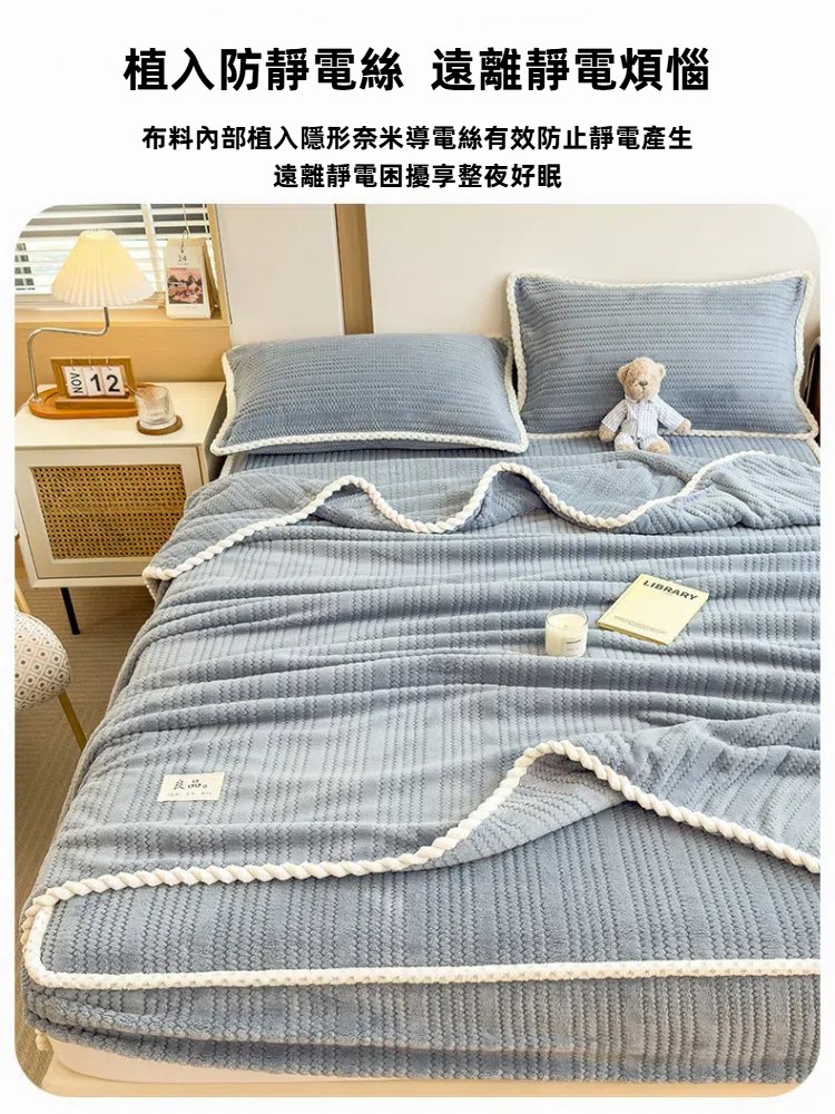 【A&R】三件組 日系牛奶絨超暖床包組 壓紋提花款 150x200CM產品材質:加厚提花牛奶絨*可用於5-30cm床墊*印染工藝 : 活性印染、包邊產品尺寸:床包 / 150x200cm、枕套 / 48x74cm產品顏色:迷霧灰產品產地: China內容物:床包x1+枕套x2洗滌方式:可水洗、可機洗、不可漂白、平鋪晾乾檢驗登記碼BSMI:M3F499溫馨提醒:商品因手工測量方式不同,存在1-2cm誤差,屬合理範圍。商品圖檔顏色因電腦螢幕設定差異會略有不同,以實際商品顏色為準,請見諒。#A&R #三件組 #日系 #牛奶絨 #超暖 #床包組 #壓紋提花款 #150x200CM #5-30CM #床高 #可用 #加大 #床罩 #防靜電