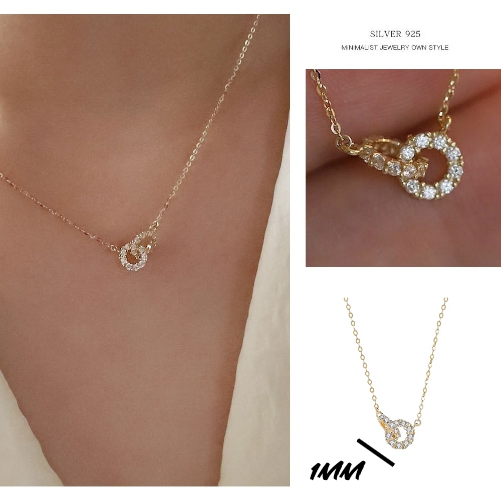 s925純銀14K金環環相扣氣質鎖骨項鏈-附馬卡收納盒