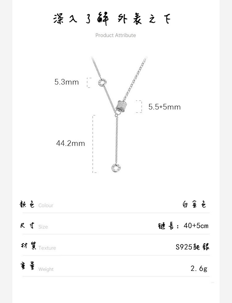 s925純銀拼接鑲鑽流蘇鎖骨小蠻腰項鍊材質 : s925純銀尺寸 : 鍊長約40+5(延長鏈)cm顏色 : 白金產地 : China包裝採用馬卡龍飾品盒(隨機出貨)●飾品保養小叮嚀●.飾品需保持乾燥勿碰水,請在每日配戴後用面紙將汗水,汙漬擦拭乾淨,如有拭銀布可再擦拭一遍保持飾品光澤,避免飾品產生變質、氧化。.飾品請勿直接接觸化妝品、香水、清潔劑、海水、雨水、清水,無論是洗手、入 浴、就寢、運動或作家事,請先將飾品取下收妥。.建議穿著打扮時, 飾品最後才穿戴上。.如有體質特殊過敏情況請勿持續佩帶。.請勿接觸高溫及火源區。●備註●.本商品基於個人衛生問題,經拆封使用後,或保養不當發生氧化現象恕無法退換,以確保下一位顧客權益。.七天鑑賞期內退換貨請保持商品完整性,若有贈品、配件煩請一起退回,若有缺件、商品毀損不完整情況發生,恕無法退換貨。.商品圖檔顏色因電腦螢幕設定差異會略有不同,以實際商品顏色為準,請見諒。#s925純銀 #鑲鑽 #流蘇 #鎖骨 #氣質 #小蠻腰 #項鍊 #抗過敏 #可調節 #情人節 #生日 #禮物