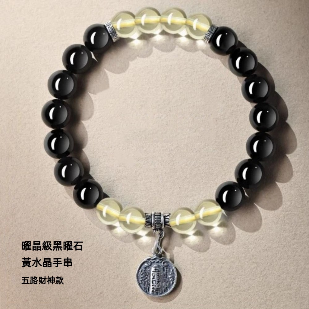 #A&R #招財轉運 #黑曜石 #黃水晶 #五路財神 #手鍊 #男款 #聚財 #辟邪 #化煞 #增強事業運 #生日禮