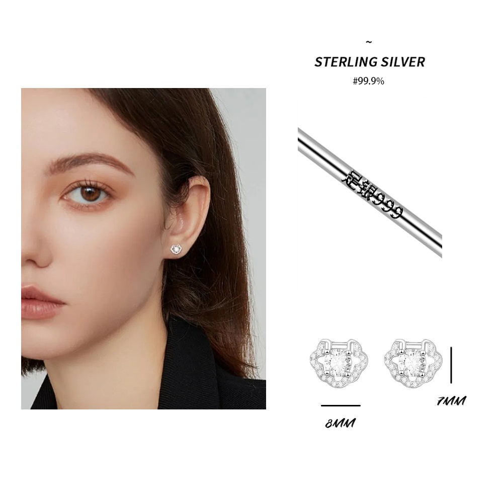 材質 : s999純銀、鋯石、矽膠耳扣(配戴更安心不易滑落)