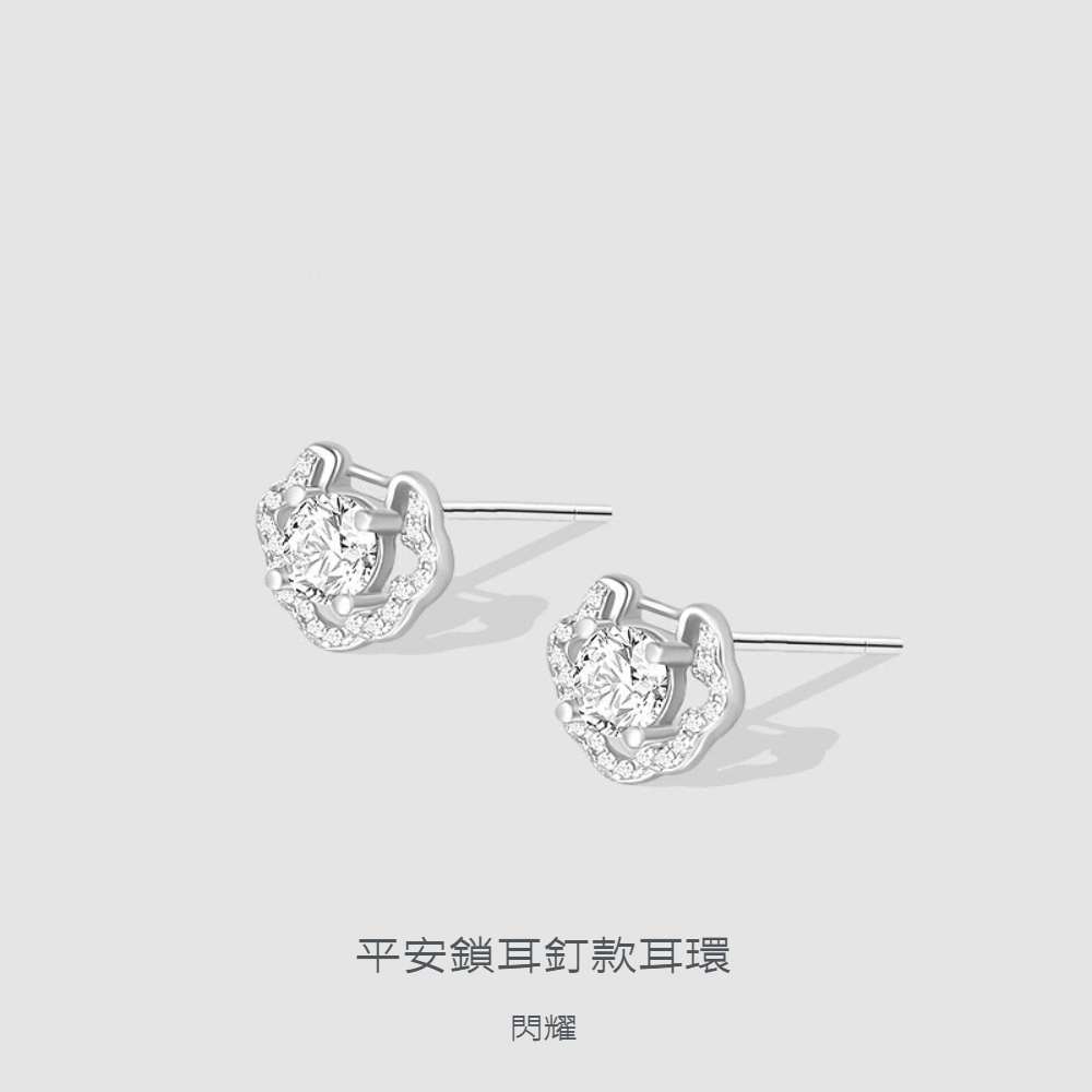 S999純銀鋯石如意平安鎖耳釘款耳環
