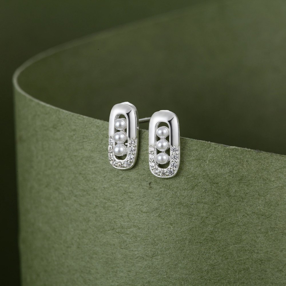 S999純銀甜姐兒酷酷風貝珠鑲鑽耳釘款耳環附馬卡收納盒
