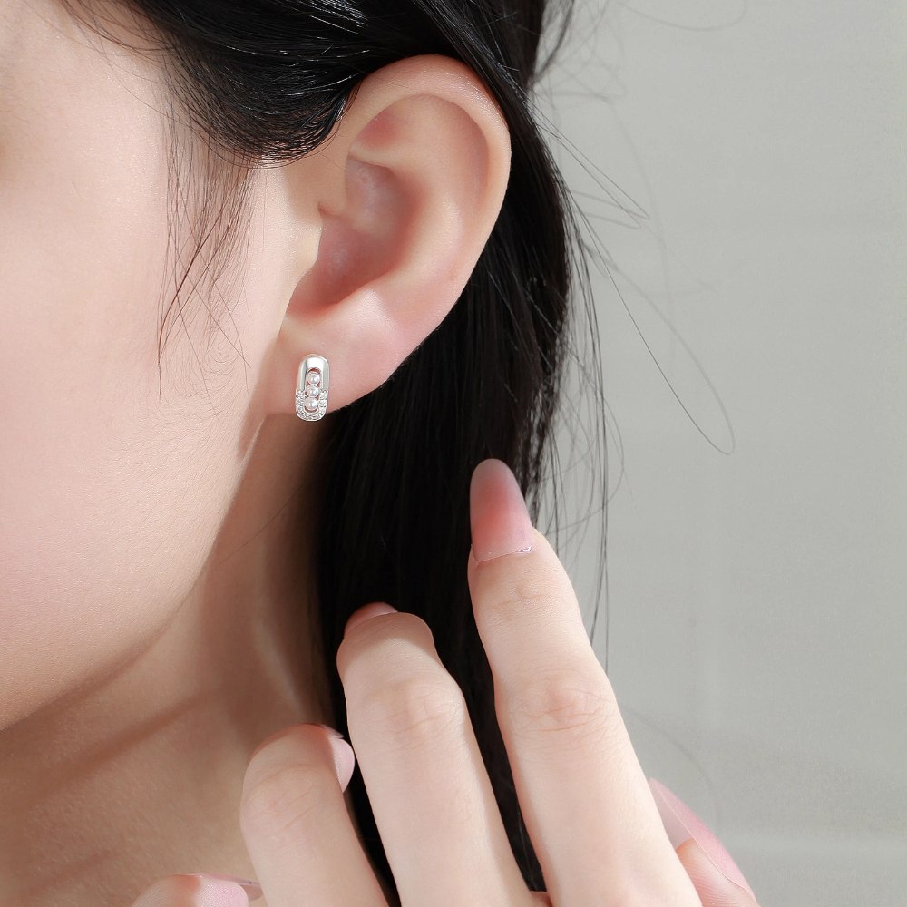 S999純銀甜姐兒酷酷風貝珠鑲鑽耳釘款耳環