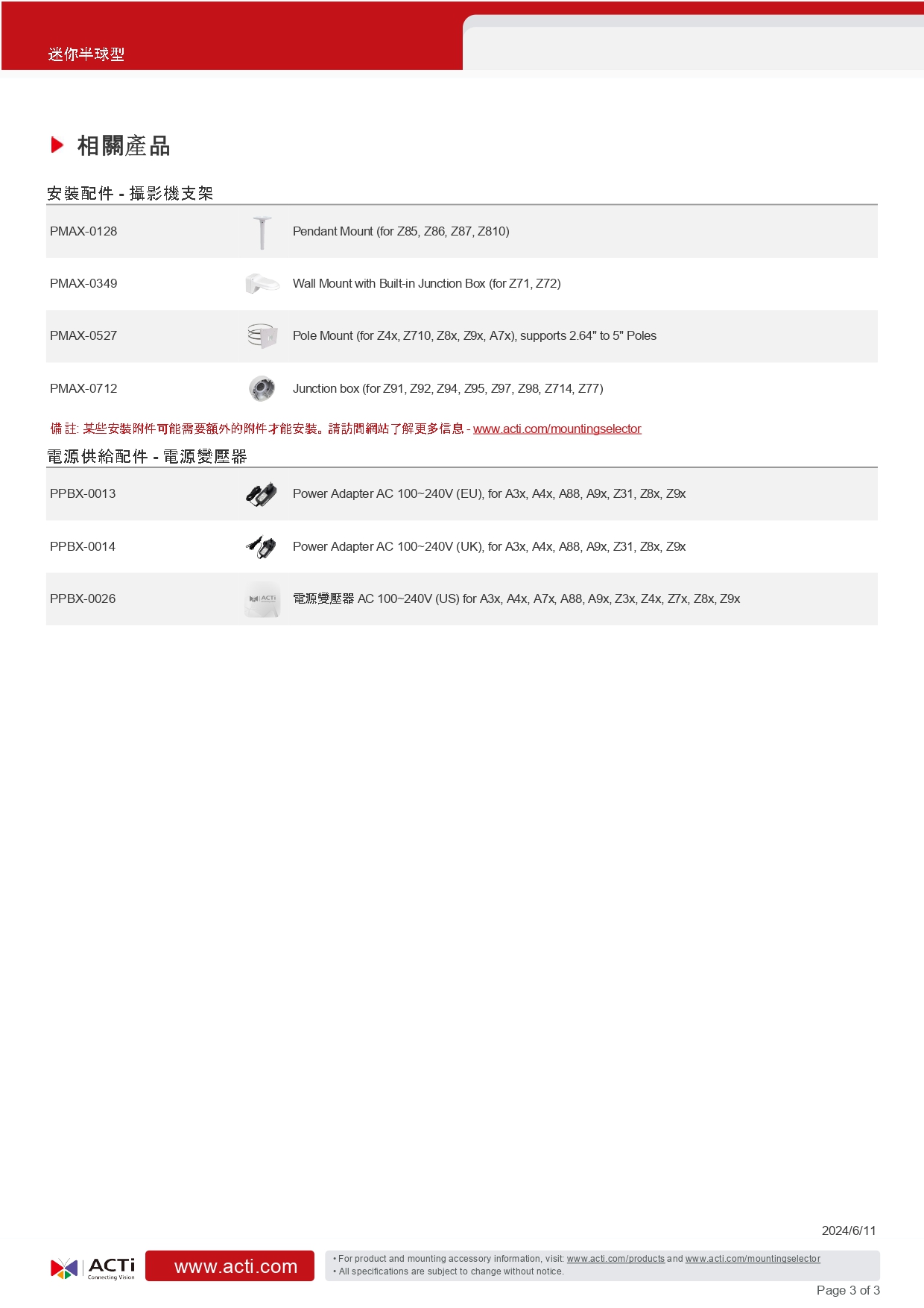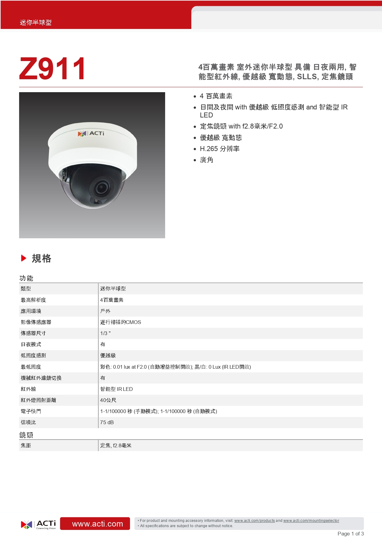 昌運監視器 ACTi Z911定焦迷你半球型攝影機(400萬畫素)f2.8毫米 紅外線 50公尺 120 dB 防水防暴