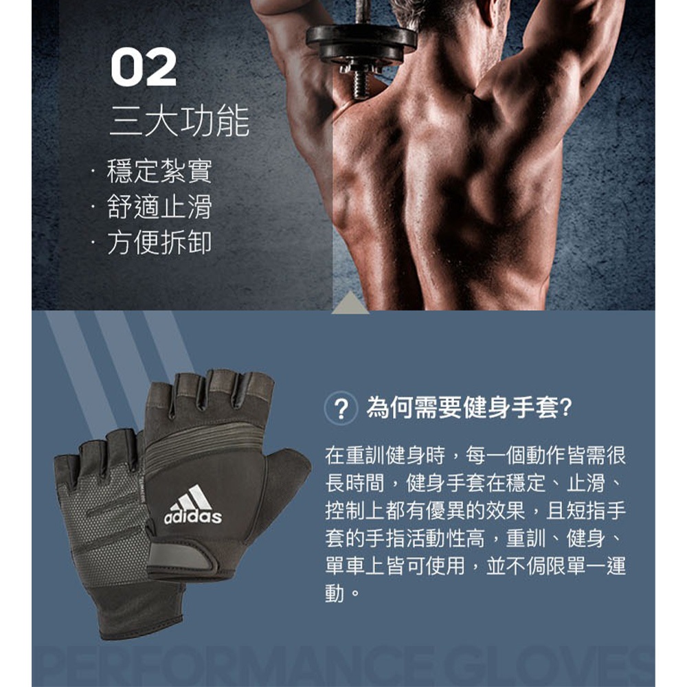 ADIDAS Training 防滑短指手套 愛迪達 健身手套 半指手套 重量訓練 ADGB-1315 格調灰【樂買網】