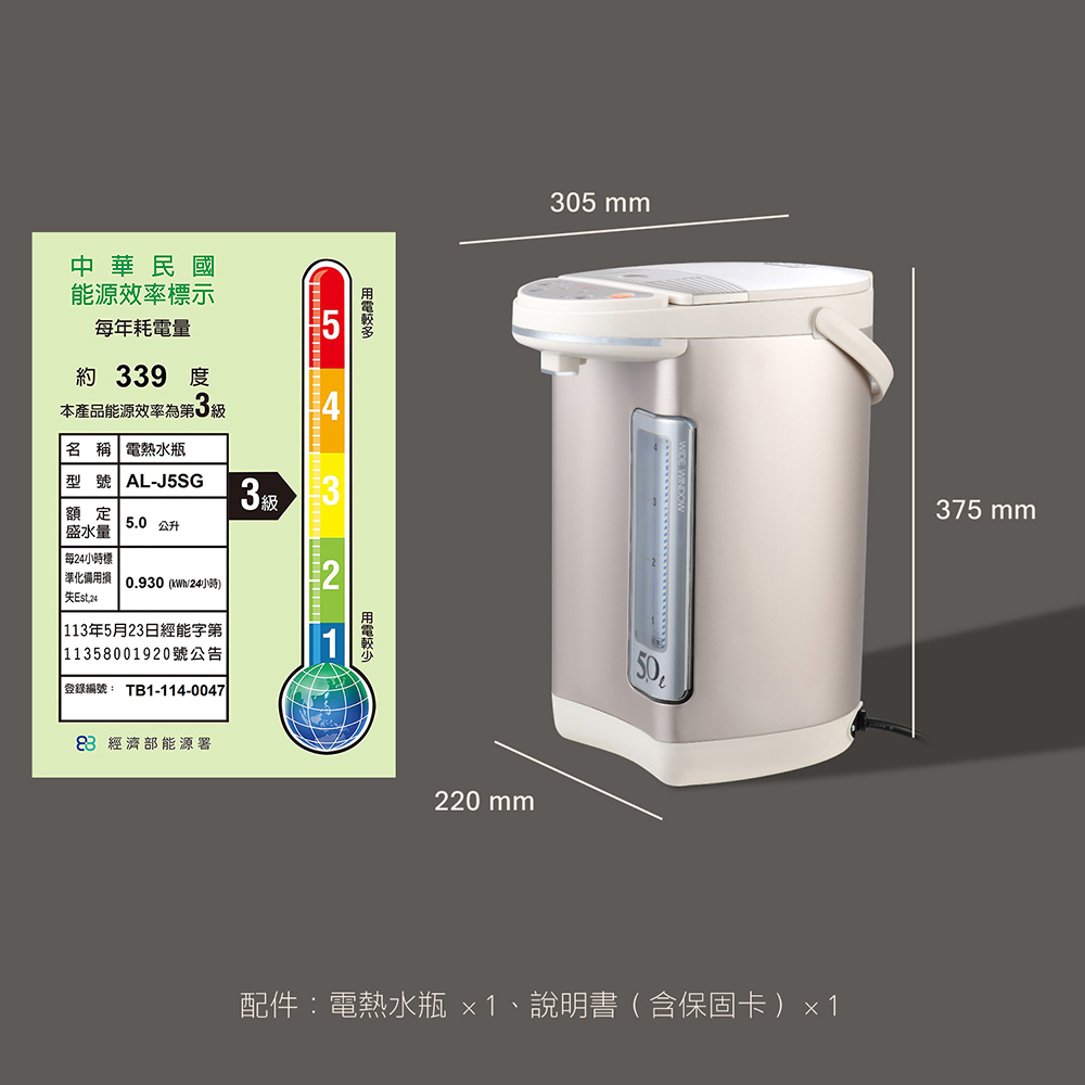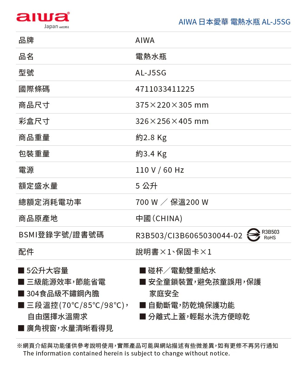 AIWA 愛華 5L 三段定溫電熱水瓶 AL-J5SG