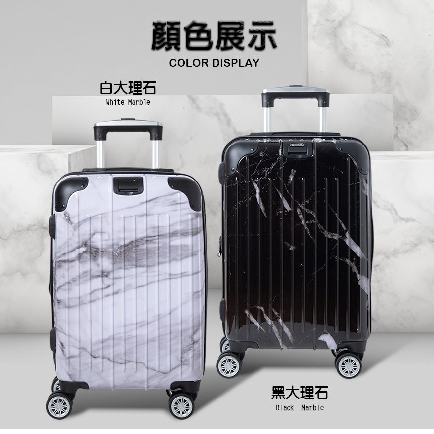 特色:PC+ABS防爆拉鏈、掛包扣、雙內裡隔網、雙X型束帶、TSA海關鎖、鋁合金拉桿、360度飛機輪、加大15-30%