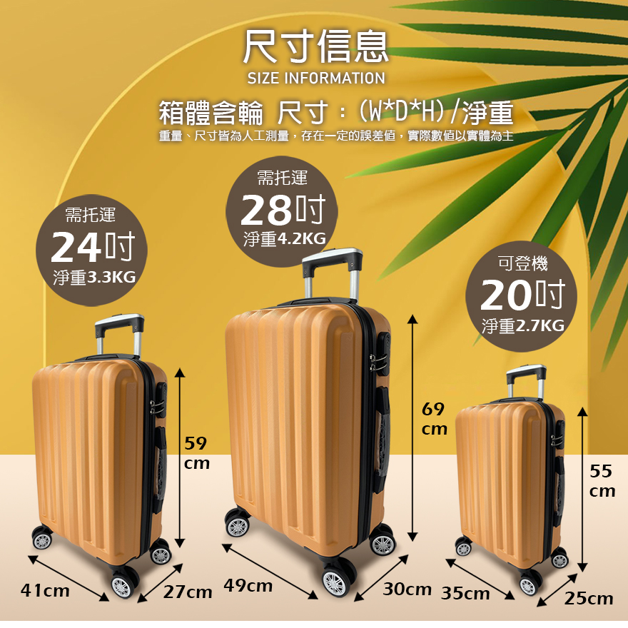 特色:三碼鎖、內裡隔網、雙X型束帶、鋁合金拉桿、立體耐磨側腳座、質感防滑提把、360度飛機輪