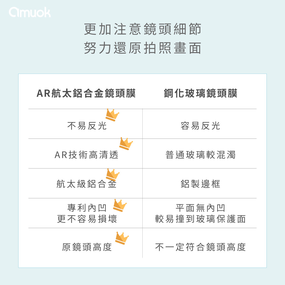 ※下單送出前請先確認您的手機型號是否正確● 航太級鋁合金● 奈米AR抗反射技術● 抗刮抗衝擊● 專利內凹,不易損壞內容物:保護膜×1、清潔包×1