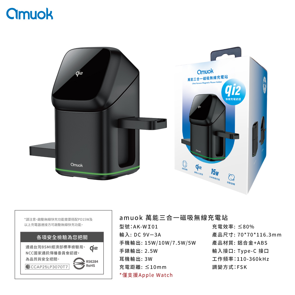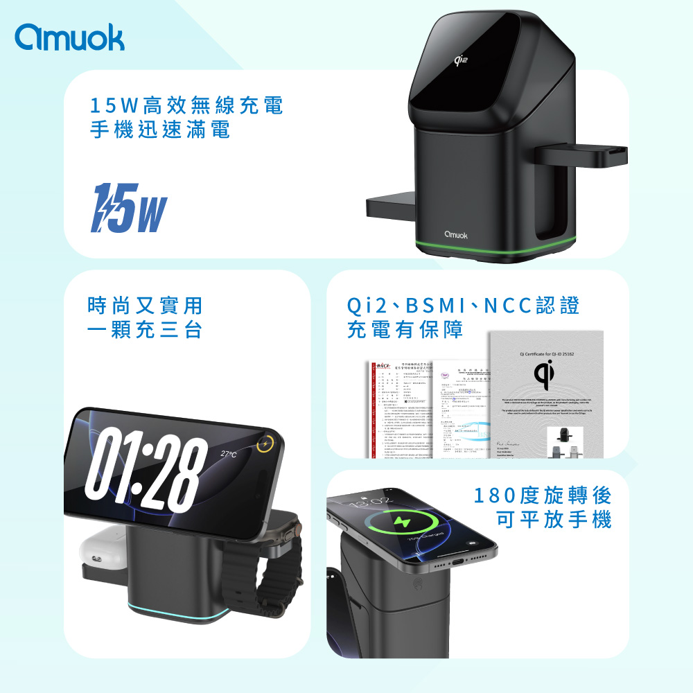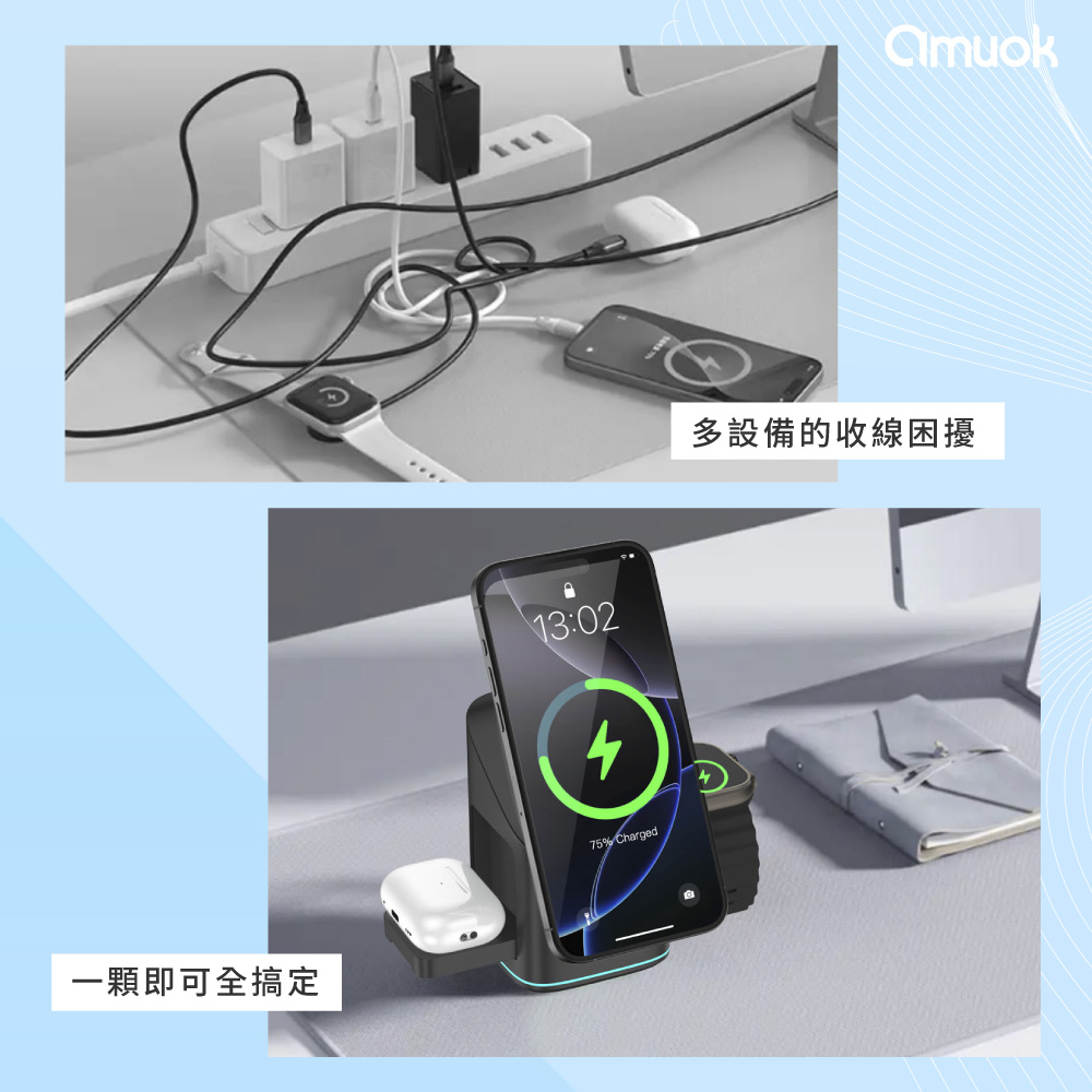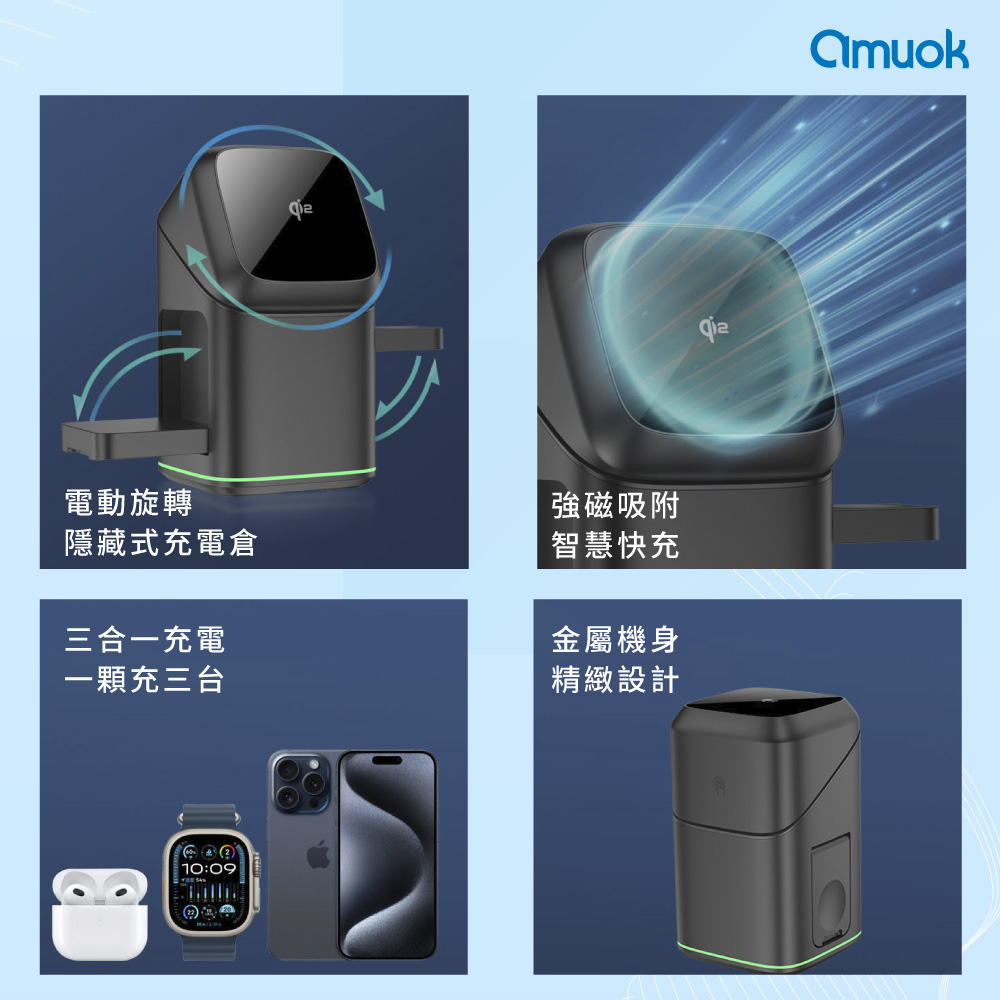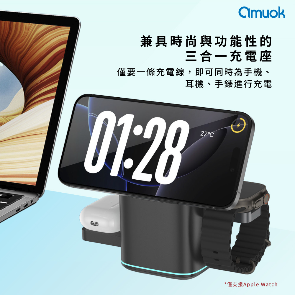〈商品規格〉 amuok 萬能三合一磁吸無線充電站
