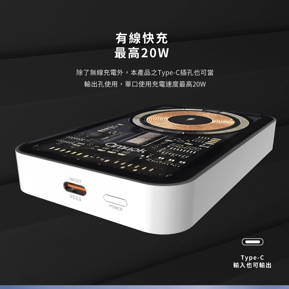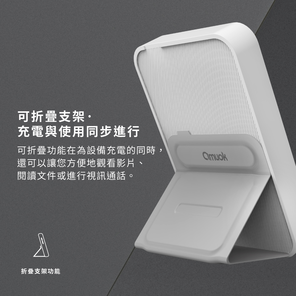 ● 無線15W快充,搭配充電線最高可達20W● 兼具支架功能,追劇開會不delate● 通過BSMI各項標準檢驗◎無USB-A孔,僅Type-C孔◎指環支架及厚型手機殼(ex.UAG) 不適用,或改用附磁吸功能之手機殼。◎無磁吸功能之手機請另行購買磁吸貼片,或附磁吸功能之手機殼。